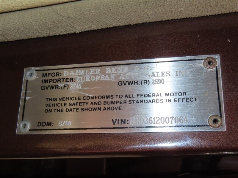 1980 Mercedes Benz 450SEL 6.9L 4-Door Sedan Model, 8-cyl. 6834cc/250hp Fuel Injection Engine, Low Mileage, Power Windows, Power Sunroof, Power Reclining Rear Seats, Tan Cloth Interior. (Disclamer: Our advertised pricing does not include government fees and taxes, any finance charges, any dealer document preparation charge, and any emission testing charges. It is the customer's sole responsibility to verify the existence and condition of any equipment listed. Sunset Auto Sales are not responsible for misprints on prices or equipment.)